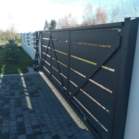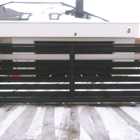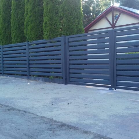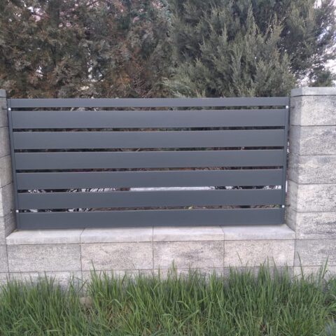 Ein System, das aus einem vollständigen Stahlprofil besteht und zur Verstärkung mit XPS-Styrodur gefüllt wird. Der Zaun zeichnet sich durch breite Lamellen (20-28cm) aus, Die geringen Abstände von +/- 30 40mm gewährleisten ein Gefühl der Diskretion und die Möglichkeit des visuellen Kontakts zur Umgebung. Die Dicke der Lamellen beträgt +/- 2 cm.