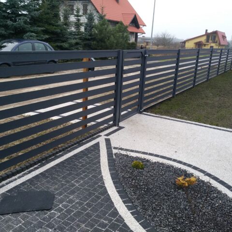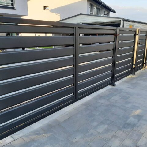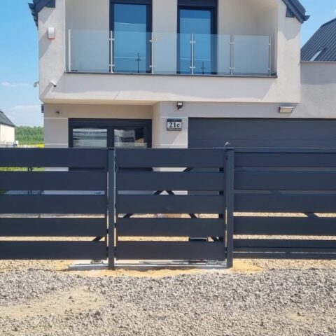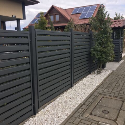 Das minimalistische Design fügt sich perfekt in jede moderne Architektur ein, Die breite Farbpalette ermöglicht den Zaun in Bezug auf Design und Stil dem vorhandenen Haus anzupassen.